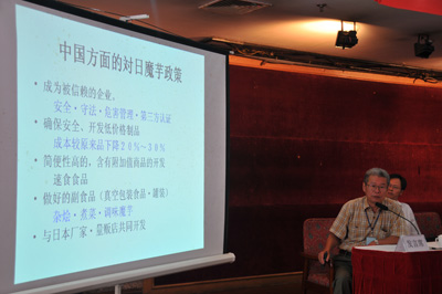 本次大会针对金融危机对全球经济和我国魔芋产业发展的影响,华中农业大学李斌教授、四川诚安贸易有限责任公司邵晨总经理、云南省昭通市农科所曾文钢老师、天津丸善食品有限公司副董事长泽村隆先生等就金融危机对魔芋的国内外市场的影响和对策以及企业如何应对这次金融危机等方面的情况进行了专题发言。鉴于《中华人民共和国食品安全法》于2009年6月1日起开始实施,四川省产品质量监督检验检测院陈燕等老师就魔芋企业执行和运用食品安全法进行了解读。本次会上,西北农林科技大学吴万兴研究员还就《魔芋精粉》国家标准修订和征求意见等情况做了说明。